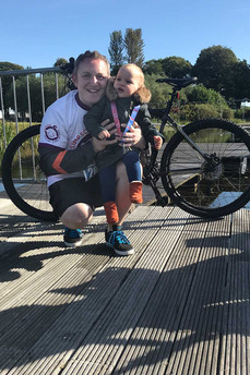 A little earlier, dad Chris crossed the finish line of the Wee Jaunt from Linlithgow to Edinburgh, to be greeted by his 18 month old daughter, Éile.
